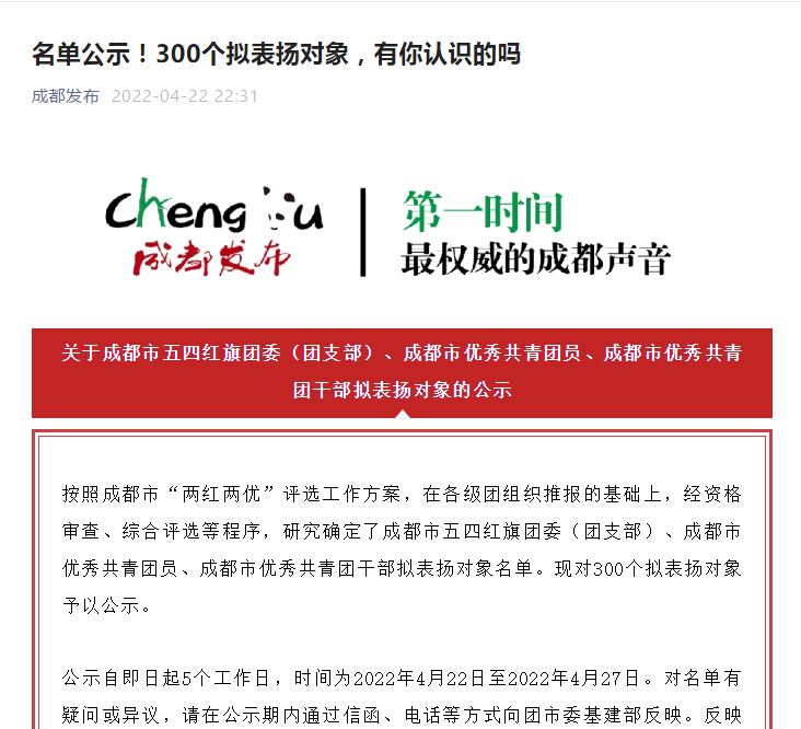 喜報(bào)我公司楊春鋒同志在成都市“兩紅兩優(yōu)”評選工作中,被評為成都市優(yōu)秀共青團(tuán)員,現(xiàn)于“成都發(fā)布”官方平臺進(jìn)行公示。楊春鋒總經(jīng)理助理?xiàng)畲轰h同志,于2016年畢業(yè)于四...